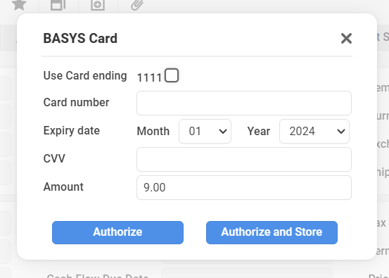 If you are entering a new card, ensure to select 'Authorize and Store', this will securely store this card for future transactions. See below: