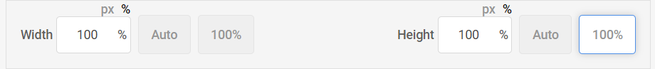 On the TAP configuration page, you'll notice certain fields offer the option to select either 'px' or '%' units.